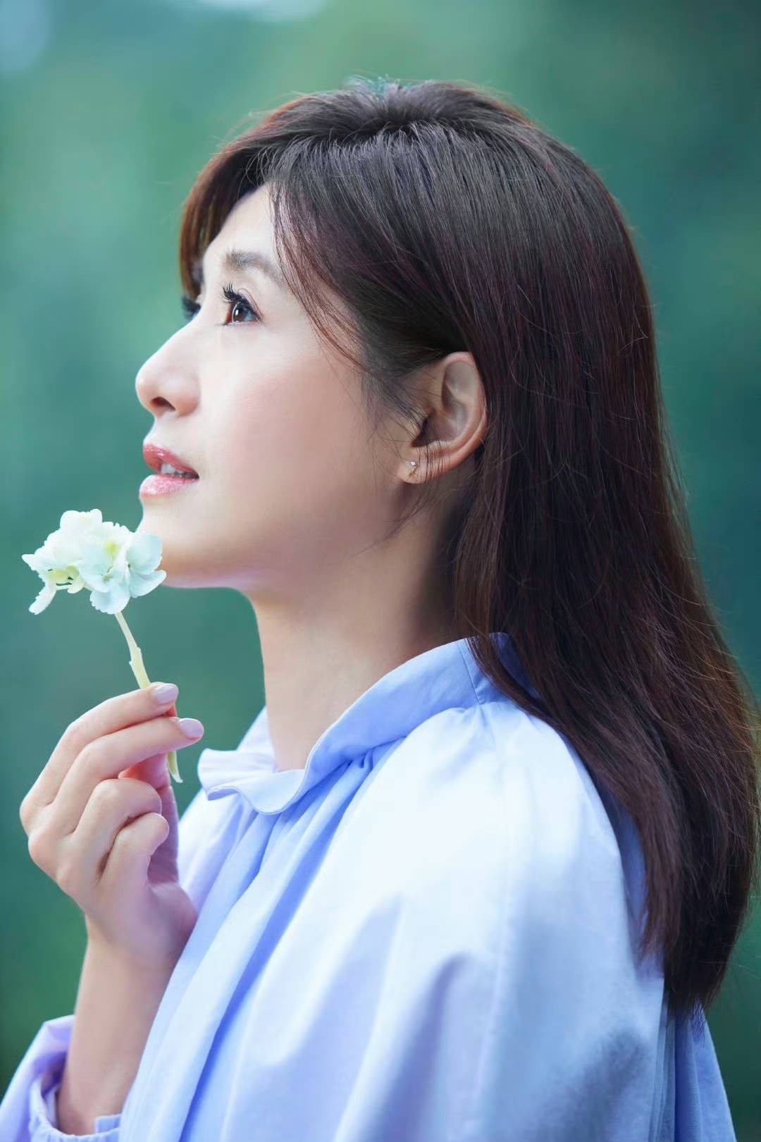 苏慧伦一头乌黑长发,笑容甜美,气质清新脱俗。